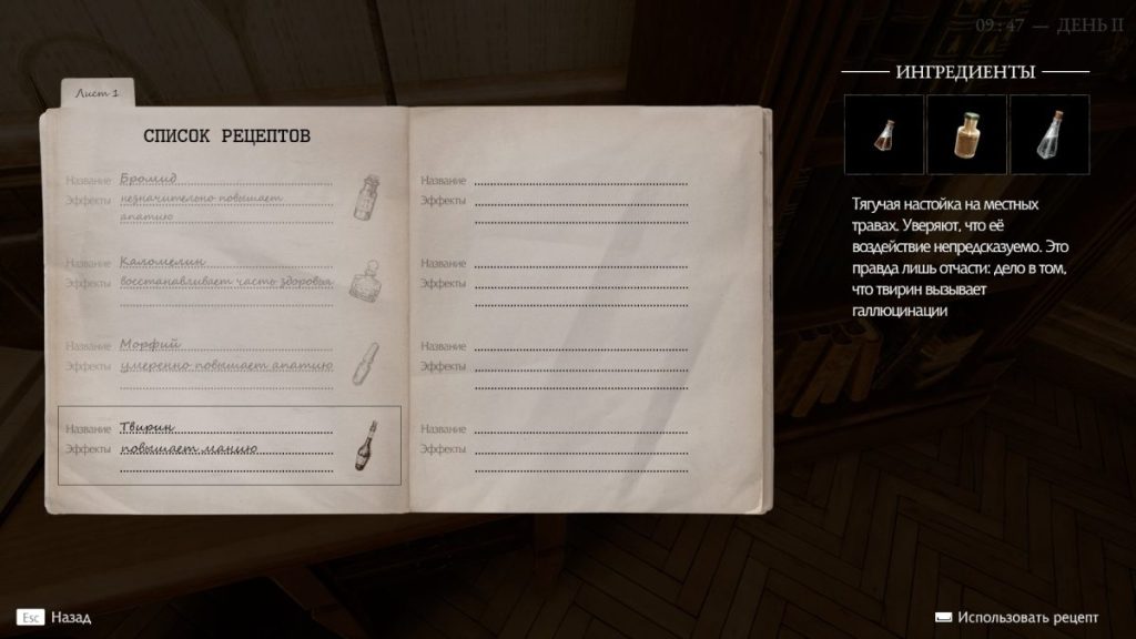 Увы, одного только рецепта для производства сильнодействующих веществ будет недостаточно. Нужно еще и два-три ингредиента для смешивания. Их можно добыть как игровым путем, так и вводом команд (add_item [название предмета]).