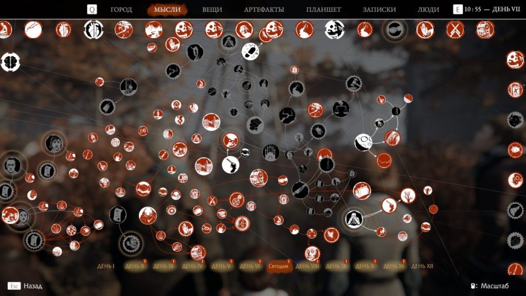 - DebugMindVisible – показывает на карте мыслей персонажа все доступные квестовые цепочки дня. В том числе и те, которые он пока не открыл игровым путем. По сути, команда дублирует функцию одного из игровых предметов (стекляшки), который можно получить у детей;