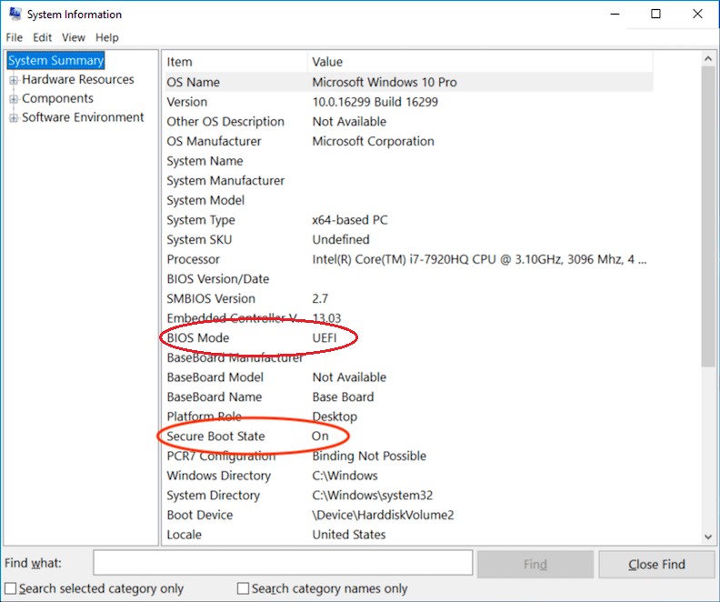 - Состояние безопасной загрузки – требуется “Вкл” или “Поддерживается” (если пишет “Не поддерживается”, это тоже несоответствие).