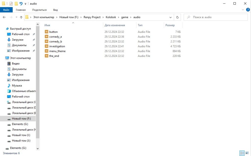 - audio – подойдет для звуков, музыки или даже диалогов, если новеллу планируется полностью озвучить;