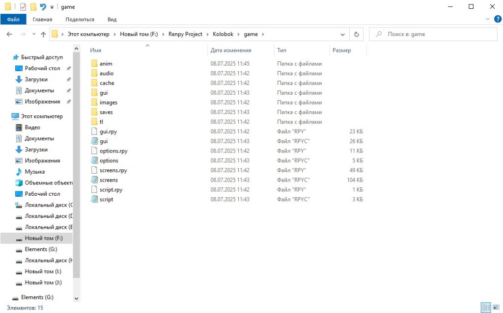При желании пользователь может создавать и свои папки, в дальнейшем указывая путь к нужным файлам при написании игрового кода. Как ему будет удобно. Главное только не употреблять в названиях файлов и папок заглавные буквы, так как у Ren’py с ними часто возникают проблемы.