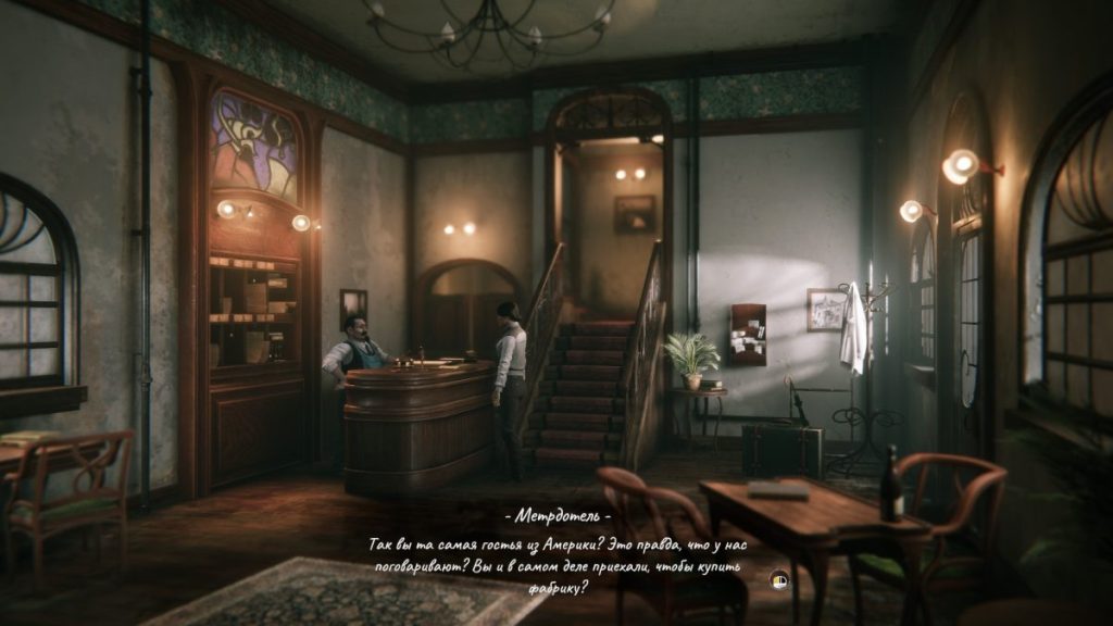 В отличие от многих создателей ремастеров, разработчики обновленной Syberia не стали заново записывать озвучку, а оставили старую добрую локализацию из нулевых. У некоторых геймеров тут же возникли претензии к этой версии – дескать, она не проходит проверку по качеству. Но с этими людьми абсолютно не хочется соглашаться. Ведь в озвучке хоть и слышны некоторые шероховатости, свойственные старым локализациям (немного гулкие студийные записи и редкие неточности перевода). Однако все это меркнет на фоне того, насколько тепло и эмоционально актеры передали настроение игры. Чего стоит только администратор отеля “Кронский”, говорящий с ярко выраженным хуторским акцентом. Или профессор Корнелиус Понс, чью лекцию перед студентами Кейт с интересом слушала в Баррокштадтском университете. Переигрывания и театральность здесь пошли только на пользу.