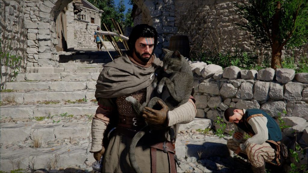 Сценарно Crimson Desert эксплуатирует вполне привычный для фентезийного жанра троп второго шанса. Наш протагонист Клифф пал в неравном бою, закончив жизнь с множеством колото-резаных ран и торчащих в тушке стрел. Но загадочные силы возвращают его из мертвых ради великих дел. Сам же протагонист явно не переживает о случившемся и никак не комментирует свое чудесное воскрешение. Куда сильнее он беспокоится о том, чтобы отыскать своих товарищей, собрать непобедимый альянс и наконец-то отомстить вражескому клану Медведей. Из-за этого создается ощущение, будто бы часть объясняющих происходящее диалогов и заставок разработчики просто забыли добавить.