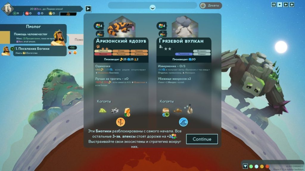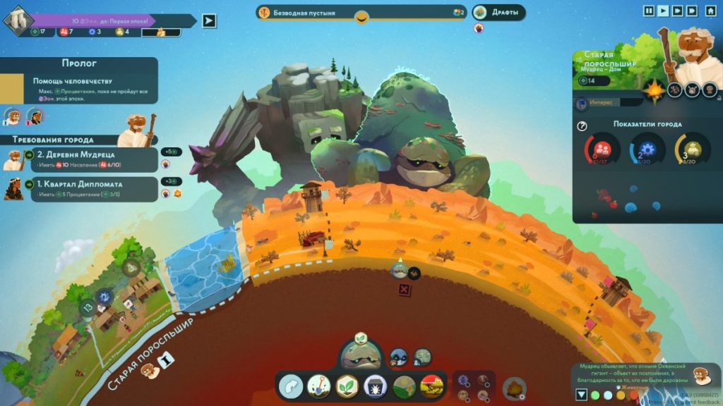 Вы помогаете им их исполнить, имея лимитированное количество “маны” на это, и так по мере прогресса планета переходит из эпохи в эпоху, обрастая новыми апгрейдами и все более сложными цепочками растений, живности и минералов.
