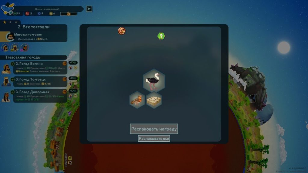 У каждого поселения три основных параметра — еда, наука и богатство [моя еда — мое богатство, как говаривал один ученый], и путем размещения соответствующих ресурсов вокруг они растут, давая с каждым уровнем “валюту”, которую можно использовать в планетарном магазине для покупки дополнительных ништяков.