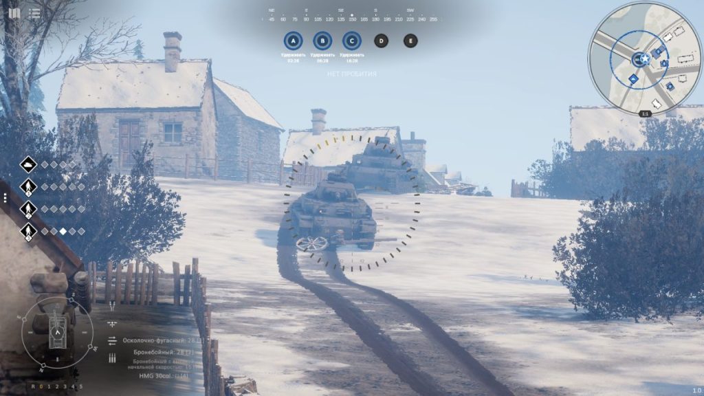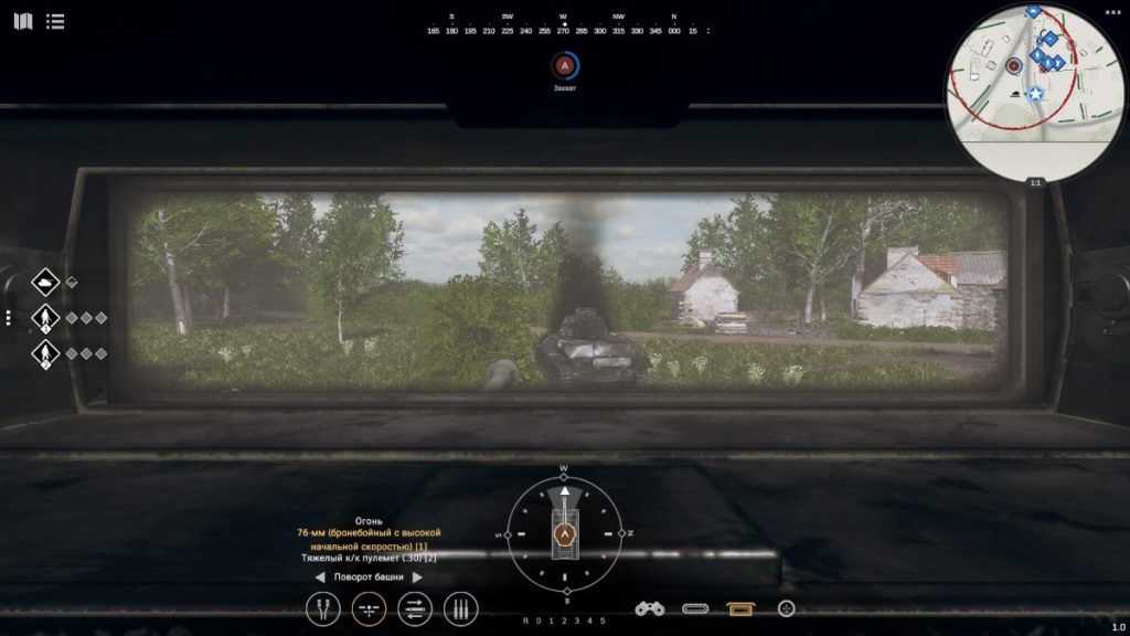 Причем игра предлагает сразу несколько вариантов выполнения действий. Двигаться можно как с помощью WASD, так и указав конечную точку поездки правой кнопкой мыши. Камера поворачивается как клавишами, так и зажатым колесиком. А пушкой танка, которая здесь далеко не всегда смотрит туда, куда смотрит камера, игрок управляет или по старинке – вращением мышью, или кликами по специальному значку на экране. Такой геймплей заставляет просчитывать свои действия наперед, заранее разворачиваться в сторону возможного появления противника (который, кстати, не отображается на мини-карте до тех пор, пока не попадет в поле зрения вас или ваших союзников) и быстро принимать решения в стрессовой ситуации, когда по вам начинают вести прицельный огонь.