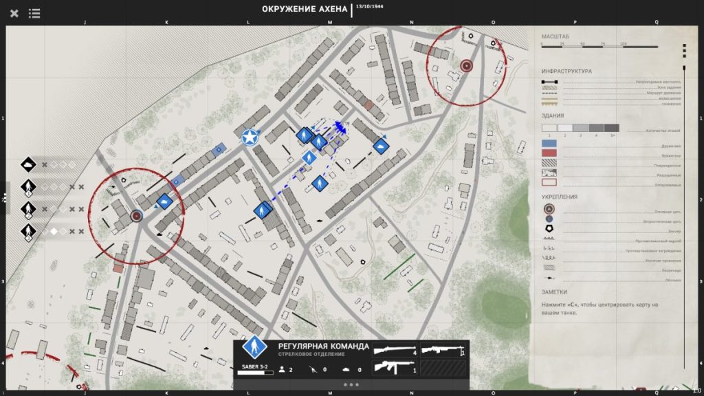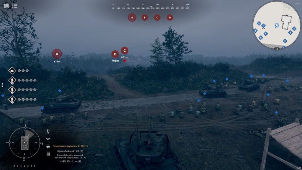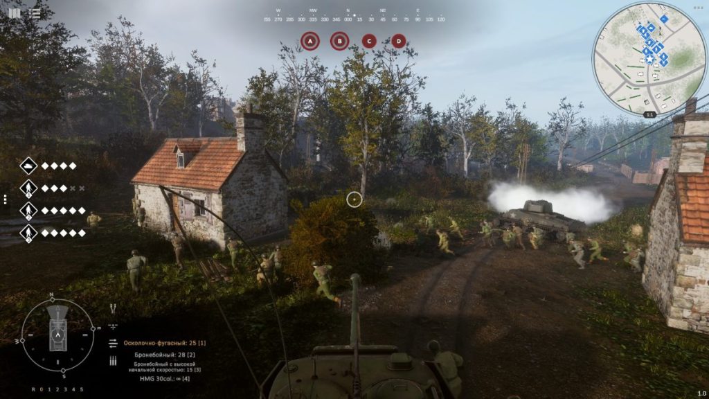 Одним только контролем над танком и его экипажем дело не ограничивается. В зоне ответственности игрока находятся также и все располагающиеся на карте союзные подразделения – пехота, пулеметные расчеты, тяжелая бронетехника. От координации действий между ними зависит успех всей операции, поэтому геймерам обязательно придется вникнуть в сильные и слабые стороны юнитов, нюансы использования укрытий на местности и особенности местного управления. Последнее, впрочем, очень даже простое и понятное – это буквально классический RTS геймплей, где нужно выделять мышью одно или несколько подразделений и указывать для них цели. Это можно делать как непосредственно из танка, зажав клавишу Shift и перейдя в “режим командира”, так и на глобальной/мини-карте.