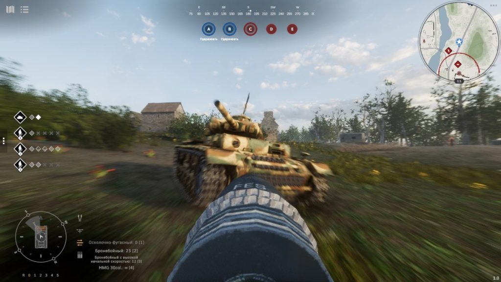 В облегченном/аркадном режиме игра уже больше напоминает привычные всем Танки и War Thunder. С видом от третьего лица и простым управлением прицелом куда легче обнаруживать противника и не возникает путаницы с управлением. Однако нельзя сказать, что играть становится сильно проще. Все по причине реализма военных действий. Противотанковое орудие или вражеская техника может поразить вас с огромного расстояния, находясь чуть ли не на другом конце карты, а пехота врага часто заседает в окнах многоэтажек, выстреливая по вам из РПГ. В такой ситуации ты буквально благодаришь разработчиков за то, что они оставили в игре возможность ручного сохранения (помимо чекпоинтов на каждой захваченной точке). Если вдруг ваши действия привели к гибели большого числа союзников, всегда можно загрузиться заново и попробовать другую тактику.